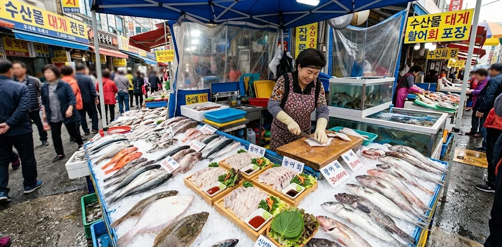 조사하다가 알게 된 건데, 자갈치시장 공식 가격표 같은 건 없어요. 상인마다 시세가 조금씩 달라서 최소 두세 곳 비교하고 고르는 게 낫다는 의견이 많았어요. "처음에 부른 가격 그냥 냈다가 옆에서 더 싸게 먹는 거 봤다"는 후기도 꽤 있었거든요.