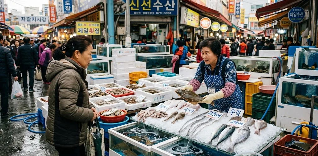 겨울엔 방어, 봄엔 도다리, 여름엔 민어·숭어, 가을엔 전어가 자주 나온다는 정보가 많았어요. 방문 시기에 맞는 제철 생선이 뭔지 미리 알고 가면 상인한테 물어보기도 편하고 선택도 빨리 돼요.