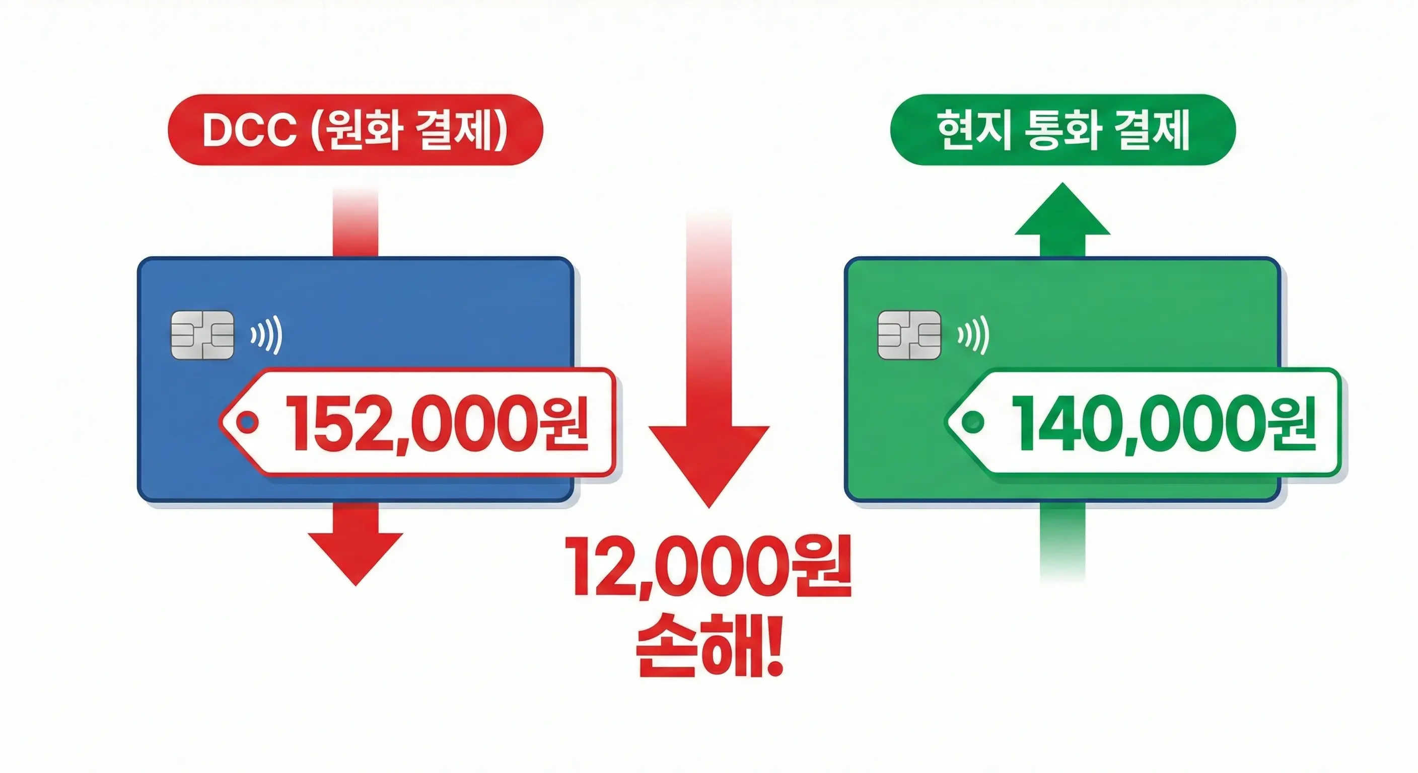 | 원화 결제(DCC) | 약 15만 2천원 | +1만2천원 |