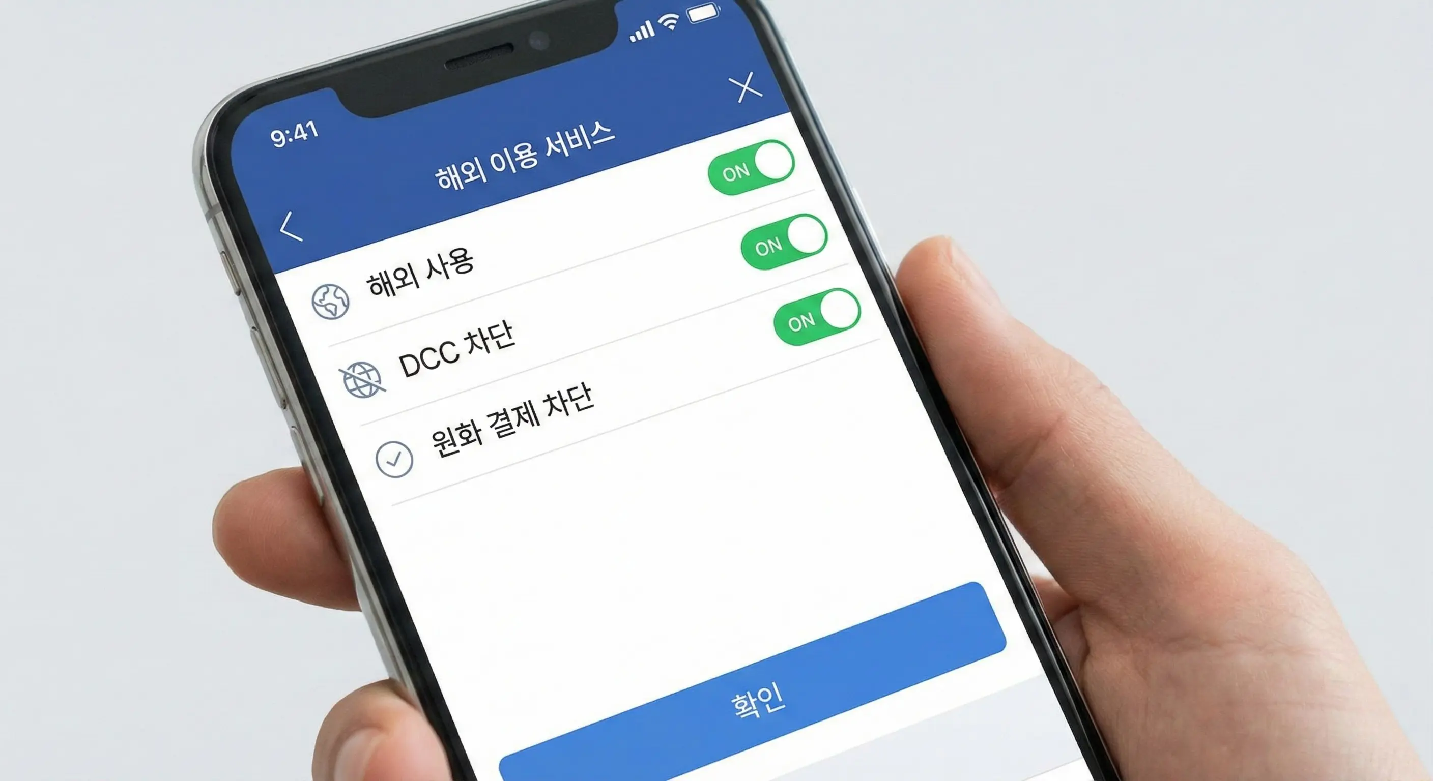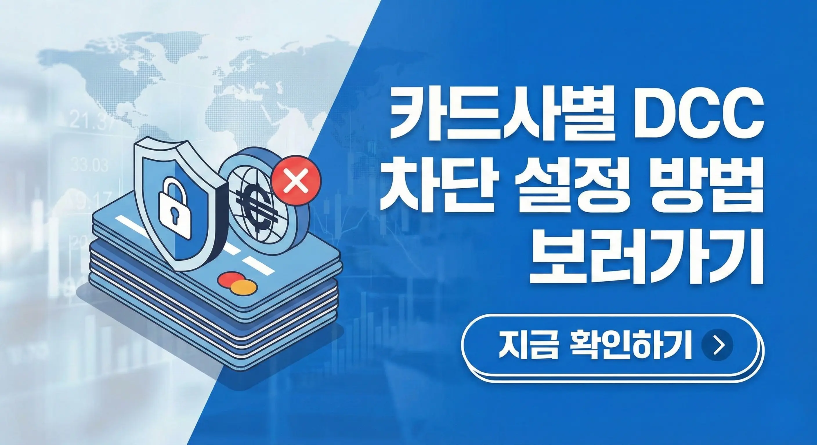 A. 신한, 삼성, KB, 현대, 우리, 하나 등 주요 카드사는 모두 DCC 차단 서비스를 제공합니다. 카드사 앱의 '해외 이용 서비스' 또는 '부가서비스' 메뉴에서 찾을 수 있습니다.