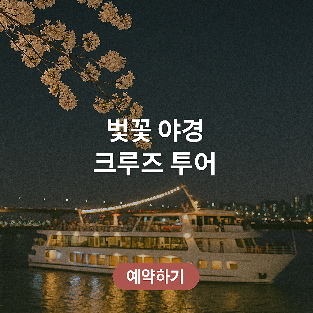 수면에 반짝이는 불빛, 흩날리는 꽃잎, 조용한 바람 소리까지. 이 봄, 가장 특별한 야경 데이트를 원하신다면 한 번쯤은 벚꽃 크루즈를 선택해보세요.