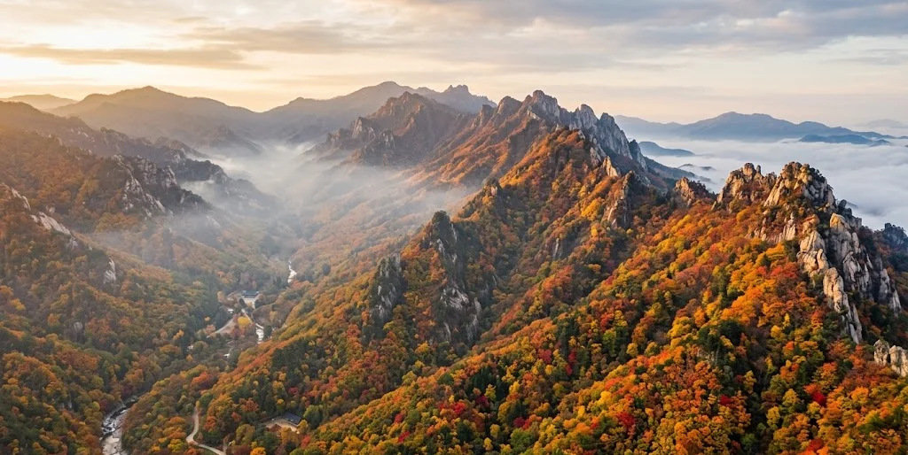 설악산 단풍 절정은 보통 10월 초~셋째 주 사이예요.대청봉 쪽에서 색이 먼저 물들고 권금성 아래로 내려오는 순서라서,
