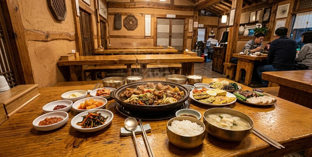 첫 번째는 안동 찜닭이에요. 간장 베이스에 당면, 감자, 닭이 들어가는 거 아시죠? 안동 구시장 골목에 찜닭 골목이 따로 있을 정도예요. 1인 기준 1만 5천 원~2만 원 내외 (2025~2026년 조사 기준, 변동 가능).