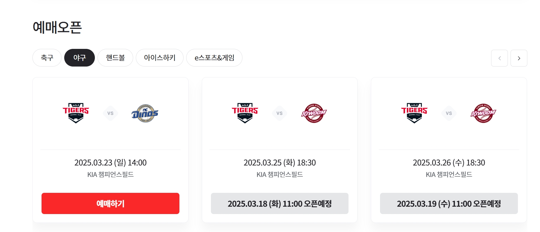 - 인기 경기의 경우 조기 매진 가능성이 높으므로 신속한 예매 필수